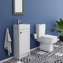 The Bayswater Plummett Grey 1200mm 4 Door Vanity Unit and Black Marble Double Bowl Basin Top will create a unique centre piece to any classic themed bathroom. It’s ample storage space provides plenty of room for bathroom essentials while the soft close doors limits the daily wear and tear and provides a quieter closing action. Made from high quality materials, it features side panelling for a classic look, elegant chrome knobs and a Bayswater logo plate that beautifully finishes the unit. The stunning black marble double bowl basin top contrasts beautifully with the classic white china basin.