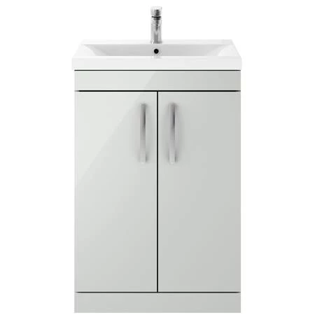 The Brooklyn light grey mist modular furniture range combines up to date looks with practical storage. This sleek gloss light grey finish compliments any modern bathroom and creates a designer look. Features two soft close doors and plenty of space for toiletries. This high quality floor standing gloss grey vanity unit is supplied with a smooth white gloss vitreous china basin. All units are provided with quality matt chrome handles.
