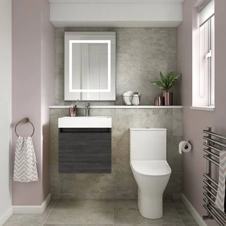 The minimalist Milan Juno space-saving wood effect wall hung vanity unit is ideal for adding a modern designer touch to any bathroom. Features a spacious highly practical soft closing cupboard door