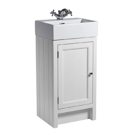 The Hampton cloakroom unit adds a classic look and feel to any ensuite or smaller bathroom with its shaker style doors and side panelling. Built and painted by hand, the units feature magnetic catches for smooth door opening, internal shelf for practical storage and a round chrome finished door knob. The countertop ceramic basin offers a practical washing area and complements Roper Rhodes range of traditional basin mixers.